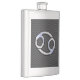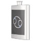 Um cromo de prata como o applique do símbolo do zodíaco do cancer em um fundo preto do impressão da fibra do carbono. Um design atrevido urbano moderno para uma grande ideia feita sob encomenda do presente de aniversário.