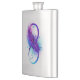 Símbolo do infinito com uma bela pena pintada em cores vibrantes roxas e azuis sobre um fundo branco.