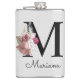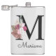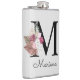Iniciais Monogramadas M Rosa Boho Floral frasco inicial, presente perfeito para uma despedida de solteira ou outra celebração divertida e feminina. Personalizado com a letra M monogramada e um nome.