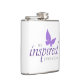 Adicione um pouco de inspiração à sua bebida favorita com este frasco de anca, que apresenta uma borboleta, elegante sans serif e letra de script, e a citação para "ser inspirada todos os dias." Layout e cópia © W.H. Sim. Todos os Direitos Reservados. Mais informações em zazzle.com/wordsofwhimsy