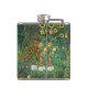 Vintage Nouveau era design de Gustav Klimt. Um cheio de flores em um jardim de chalé em um fundo verde profundo.