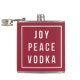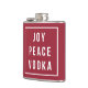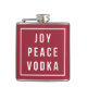 Ah, os feriados! Joy, paz...e vodka. Um frasco engraçado faz um presente de excelente para o amante do coquetel em sua vida. Design apresenta um fundo vermelho de morango festivo com "Joy Peace Vodka" em blocos brancos tipografia dentro a white quadrado.