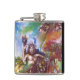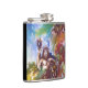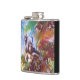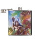 Retrato de Zeus com leão, cavalos sob o sol e céu azul, pintura de aquarela figurativa contemporânea e elaboração digital com efeitos especiais 1992, Elegante, design legal artística em azul vibrante .verde, vermelho marrom, cores amarelas.