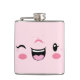 Bonita e divertida, rosa, Winking Kawaii Face Flask. Excelente para crianças e adultos.
