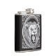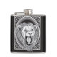 Uma imagem estilizado e decorativa de um leão rujir em preto e branco.