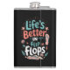 Designed in a clean, flat vector style, the layout showcases fun cartoon flip-flops, sunny rays, seashells, and subtle sandy textures, all arranged in a bright, balanced format. Whether you're at the beach, poolside, or dreaming of salty air, this design says it all — life really is better in flip-flops.