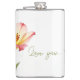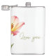 Três lírios, suas pétalas brancas cremosas suavemente coradas com rosa nas pontas, incorporam afeto puro e gentil. A artista tenra evoca um senso de conforto leve e charme delicado, enquanto o embutido "Love You..." sussurra uma mensagem sincera, fazer esta peça uma ode serena à adoração.