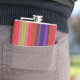 Esta garrafa anca brilhante colorida é decorada com um teste padrão listrado abstrato em um espectro de alaranjado, de roxo, de amarelo, de vermelho, de verde, de violeta e de preto que se assemelha a um arco-íris bonito.