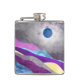 Um belo design de paisagem abstrato com uma lua azul e colinas rolantes coloridas texturizadas em tons de roxo, violeta, azul, ciano e amarelo.