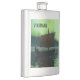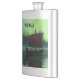 Uma imagem ligeiramente estilizada de um navio de longa distância Viking navegando à noite sob as Luzes do Norte ali um casal de icebergs; a maioria da tripulação está dormindo. A leitura de texto "VIKINGAR" (Vikings) também é exibida.