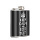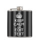 Um estilo personalizado de listras negras clássicas decor Manter Calmo e Continuar, dizendo em um presente personalizado. Humorístico ou caprichoso experimente suas palavras criativas nas duas linhas editáveis de texto. Lembre-se de usar letras CAPITAL para obter melhores resultados. Use o link "Perguntar a este Designer" para entrar em contato conosco com suas solicitações especiais de design ou para obter assistência com seu projeto de personalização.