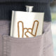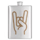 A garrafa projetou com o sinal dos chifres, chifres do metal, engancha-os chifres, mão do metal.