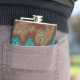 Uma representação artística de um design de mapa mineral. Cores laranja queimado e turquesa em tons variados. Este cantil sofisticado seria um ótimo presente para um mineralogista, ou qualquer pessoa associada à indústria de mineração.