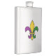 Design com um padrão sem soldadura de pulgas (flores de lilly) nas cores de New Orleans Mardi Gras; púrpura, ouro e design verde sobre fundo branco