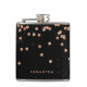 Este vidro, frasco moderno, apresenta um elegante fundo de mármore preto com um falso confetti rosa dourado esparso, e um ponto para o seu nome.