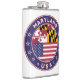 Crachá de Maryland com bandeira de Maryland e bandeira de cores dos EUA, forma arredondada. Emblema de Maryland. Selo de Maryland. Coleção dos Estados Unidos.