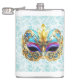 Uma máscara de mascarada captivante enfeitada com embelezamentos intrincados de ouro contra um delicado fundo texturizado. A design apresenta padrões giratórios, acentuados com joias e uma crista central de ouro, criando um ar de opulência e mistério. As aberturas oculares são realçadas com realces vermelhos arrojados, acrescentando um contraste impressionante.