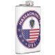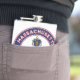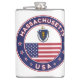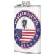 Crachá de Massachusetts com bandeira de Massachusetts e bandeira dos EUA, cores, forma arredondada. Emblema de Massachusetts. Selo de Massachusetts. Coleção dos Estados Unidos.