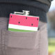 Um legal design com design de melancia suculenta. Polpa rosa, sementes pretas e casca verde.