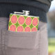 Design com um toque retrorreflector inspirado por uma melancia com um círculo cor-de-rosa e um padrão de sementes num fundo verde escuro. Um design personalizável para você personalizar com seu próprio texto, imagens e ideias. Uma imagem de arte digital original.