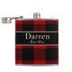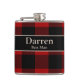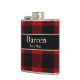Este frasco personalizado apresenta um padrão rústico xadrez de Búfalo vermelho e preto. Um nome de exemplo e o título de Melhor Amigo são impressos em uma faixa preta. É um presente perfeito para agradecer os padrinhos no seu casamento.