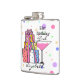 Diga "o feliz aniversario" em uma maneira especial com esta garrafa anca do "da menina adorável aniversário de 21 anos". Presentes coloridos envolvidos em um arco e em um cosmos cor-de-rosa martini. Bolinhas coloridas no fundo com nome personalizado! O presente de aniversário perfeito para uma menina perfeita do aniversário! Para ver mais produtos-Por favor legal visitar minha loja "a princesa de Hungarican" em www.zazzle.com/hungaricanprincess*.