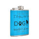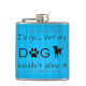 Um frasco perfeito para quem prefere a companhia de cães e o conforto de casa! Este design de frasco apresenta texto que diz "Eu ia...mas o meu cão não o permitiria." com uma pata impressa e uma silhueta de cão embelezada contra um fundo de madeira azul. Itens de presentes adicionais disponíveis com este design também.