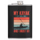 Camisetas, posters, bolsas, planificadores, design de caiaque incríveis, e mais com um caiaque de silhueta em um rio com texto que lê Meu Kayak está chamando e eu devo ir! Este design de caiaque colorido é excelente para o caiaque que parece não ter tempo suficiente no caiaque d'água!