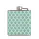 Padrão quatrefoil verde e branco da Casa da Moeda com nome azul marinho e monograma.
