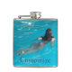 Modelo feminina de cabelo preto nadando em um mar azul lindo para personalizar, personalize alterando para seu nome