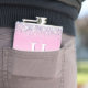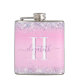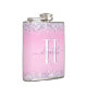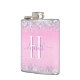 Frasco cinzento, monograma, com uma trama holográfica brilhante, púrpura, e uma cinta prateada, ao longo do topo e do fundo, sobre fundo cor-de-rosa. Você pode adicionar seu monograma inicial e seu nome em um roteiro roxo de tendências com pestanas.