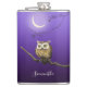 Uma coruja marrom com olhos brilhantes sentados em um galho sob a luz da lua. Céu azul profundo, lua brilhante. Nome personalizado, fonte manuscrita de tendência. A coruja é um trabalho de arte derivado baseado em um impressão japonês de colheita no início dos anos 1900 (abrigado em Rijksmuseum).