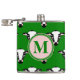 Um padrão de vacas estilizadas e bonitinhas em um terreno verde ousado. No centro de uma moda, rotundo rosa com um monograma verde e personalizável. Se quiser ajuda, sinta-se à vontade para entrar em contato comigo através do botão " pergunte a este designer " logo abaixo deste texto.
