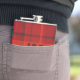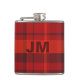 Um padrão clássico de tartan em vermelho e preto com um monograma personalizado.