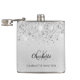 Um fundo com aparência metálica prateada falsa e elegante poeira brilhante falsa. Personalize e adicione o primeiro nome dela, iniciais do monograma e nome completo. O primeiro nome é escrito em preto com uma fonte manuscrita moderna.