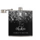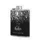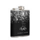 Um fundo preto elegante com brilho de purpurina prateada falsa. Personalize e adicione seu primeiro nome, iniciais do monograma e nome completo. O primeiro nome é escrito com um estilo de letra manuscrita moderna.