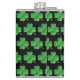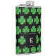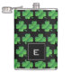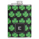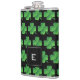 Frasco Monograma do Padrão de Shamrock de Dia de São Patrício Sortudo Concebido com fundo preto personalizável e quatro moldes de trevo de folha revestidos por película. Monograma de estilo simples e moderno na frente, em letra de bloco branca, no quadro de borda quadrada preta. Faz uma ideia de presente de São Patrício excelente para ele. CLIQUE EM PERSONALIZAR OPÇÃO MODELO E ENTRE MONOGRAMA INICIAL.