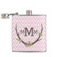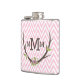 Padrão moderno, de moda, chic, rosa claro e zigue-zague-gástrico-branco com um gráfico floral de galho ornamental que se assemelha a galhadas de veados. Um monograma triplo em castanho claro é apresentado no centro do rabisco rústico.