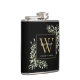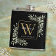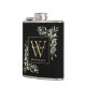 Folhagem elegante de aquarela com monograma de nome em frasco apresentando uma inicial de monograma dourado em um fundo preto chic. Projetado por Thisisnotme©