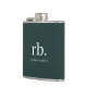 Um design de monograma minimalista com grandes iniciais tipográficas em uma fonte clássica com seu nome abaixo em um fundo verde escuro. O presente ou acessório perfeitamente personalizado!