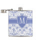 Um Raio de Dica muito na moda para personalizar com seu Monograma, com um Azul Lacy bonito no padrão White Periwinkle. Parte da coleção Posh e Painterly 'Periwinkle Patch', este design pode ser personalizado para ajustado qualquer Hip Flask e a fonte também pode ser personalizada.