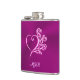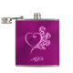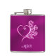 Um frasco muito bonito, com um coração e rosas de aspecto gravado. Está sobre um fundo de beringela contrastante e usa um monograma personalizado para você mudar para suas iniciais, digitando na caixa.