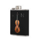 Frasco de violino monograma em fundo preto. Com letras brancas simples, você pode personalizar com suas próprias iniciais. Um item divertido perfeito para si mesmo ou como presente para o músico na sua vida.