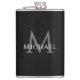 This personalized flask features your custom name and initial in crisp white and gray typography on a deep black background—designed for groomsmen who appreciate modern style and masculine gear. Whether you're curating bachelor party favors or handing out wedding day thank-yous, this sleek stainless steel flask adds a personal touch to every celebration. The elegant monogram layout blends sports-inspired design with refined typography. Customize the name and initial to match your event palette—distinctly modern, distinctly for him.