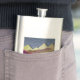Uma paisagem abstrato com cores e texturas únicas mostrando uma cena de montanha em tons de roxo, bronzeado, bege e e marrom.