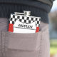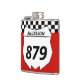 Alinha em estilo na sua próxima moto com seu próprio frasco personalizado. Este frasco tem uma placa de número branco que está pronta para ser personalizada com o seu nome e número de bicicleta. A placa do número é definida sobre um fundo vermelho com uma borda de sinalizador de verificação em preto-e-branco.