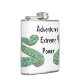 Este Flask é para amantes da aventura. Você pode mudar o texto para seus próprios desejos criativos, nome ou data de nascimento (25, 35, 45, 55, 65 anos). Sua superfície apresenta dois cobras verdes animados com pontos amarelos irregulares que acrescentam singularidade e força mística à design. No centro do Flask, a inscrição diz: "Aventuras. Energia. Extreme." Este Flask será um acessório excelente para aqueles que lideram um estilo de vida ativo e estão sempre lutando por novas alturas.