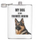 This funny dog lover flask features a bold German Shepherd portrait paired with the phrase “My Dog Is My Favorite Human.” Clean, confident, and proudly pet-obsessed, it’s the perfect everyday carry for dog parents who know exactly where their loyalty lies.