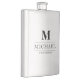Esse frasco simples, elegante e monograma de padrinhos de casamento apresenta os nomes dos padrinhos de casamento e inicial, escrito em uma tenda tipografia minimalista negra. Basta acrescentar os nomes dos padrinhos de casamento e suas iniciais na seção personalizada para criar seu próprio balão de padrinhos de casamento masculinos. Embora seja apresentado aqui como um frasco padrinho de casamento, personalize facilmente a seção de título para o noivo, melhor homem, pai do noivo e pai da noiva. Excelente personalizado ideia de presente para sua festa de casamento.