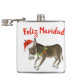 Ilustração de aquarela de um burro/burro decolado para os feriados no boné e colarinho de Papais noeis com texto vermelho personalizável "Feliz Navidad" em script moderno